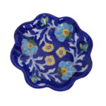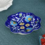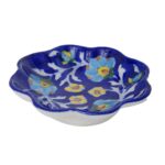 Indian Art Blue Pottery is widely recognized as a traditional craft of Jaipur, though it is Turko-Persian in origin. The name ‘blue pottery’ comes from the eye-catching cobalt blue dye used to color the pottery. Serving dishes as fresh as the food being served. These monochrome flower shaped Bowls, have a unique texture forming motifs of flower petals. The floral bowls are apt to be used as a pasta bowl, rice bowl, curry dish or even as a fruit bowl on the centre of the table. The colourful bowls can be paired to create a bowl set for a festive decor table setting