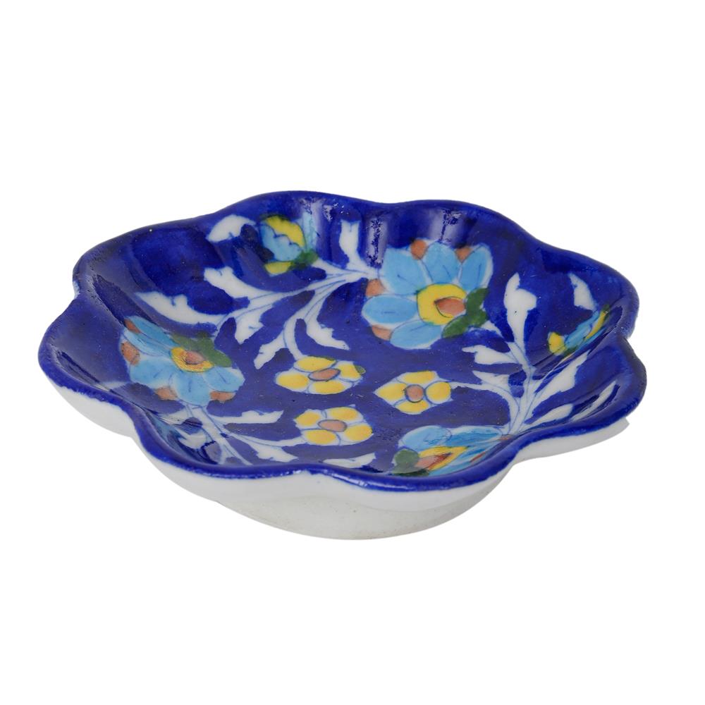 - Beautiful Blue Pottery Multi Colour Floral Hand Painted Dish