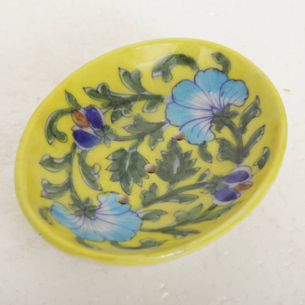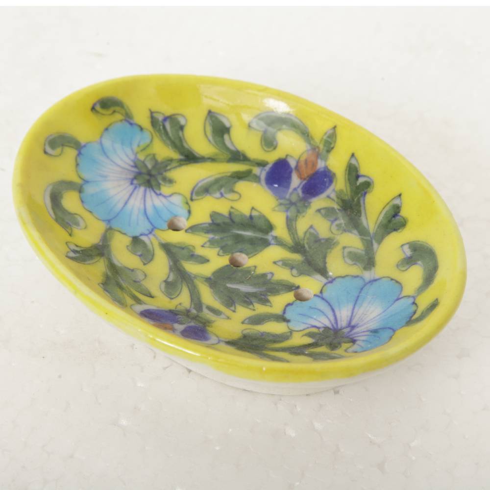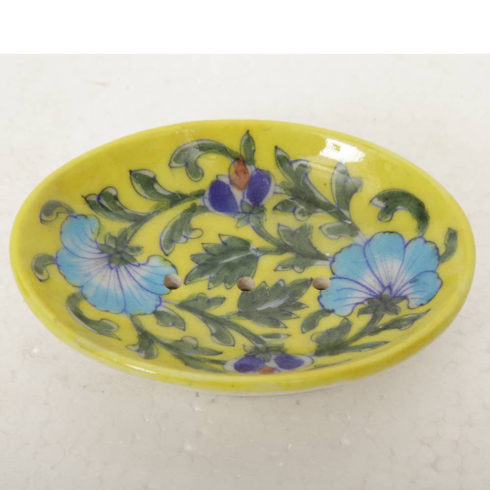 This Blue Pottery Soap Stand is Floral Multi Colour Hand painted which will never fade. Cute and nice looking, the soap dish painting adds a clean look to your bathroom, shower, kitchen etc.