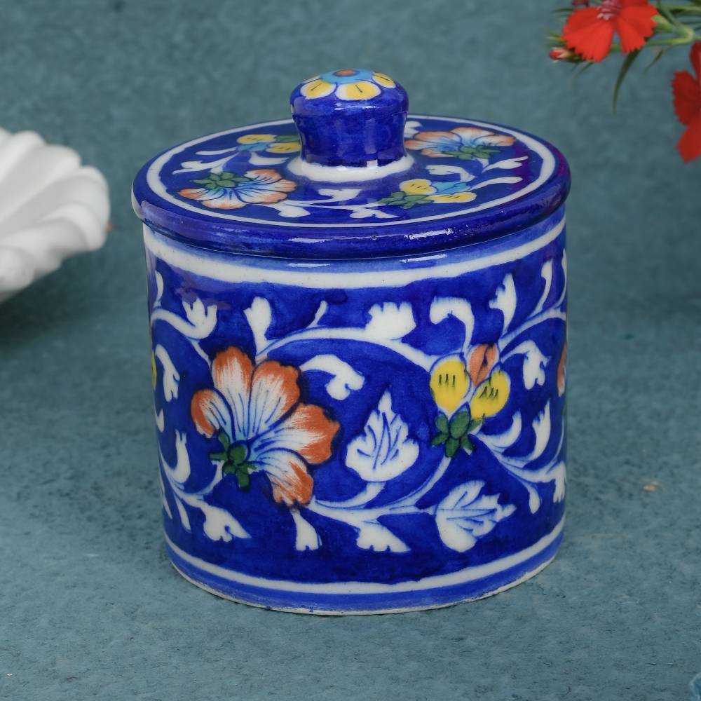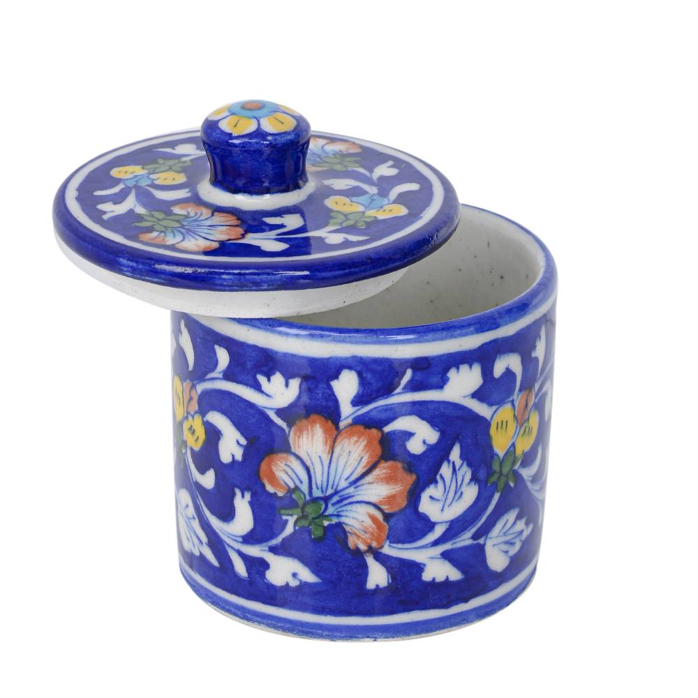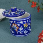 Blue Pottery Tea, Sugar, Coffee Multi-Purpose Container with Lid, Blue colour is very unique combination which looks great. These containers can be use as Table Top, Pickle, Jams etc. These containers are typically made from clay and adorned with beautiful blue glazes or designs. serving different purposes such as storing spices, tea, jewellery, or simply for decorative use. These containers often showcase intricate patterns or hand-painted motifs, making them eye-catching pieces of art.