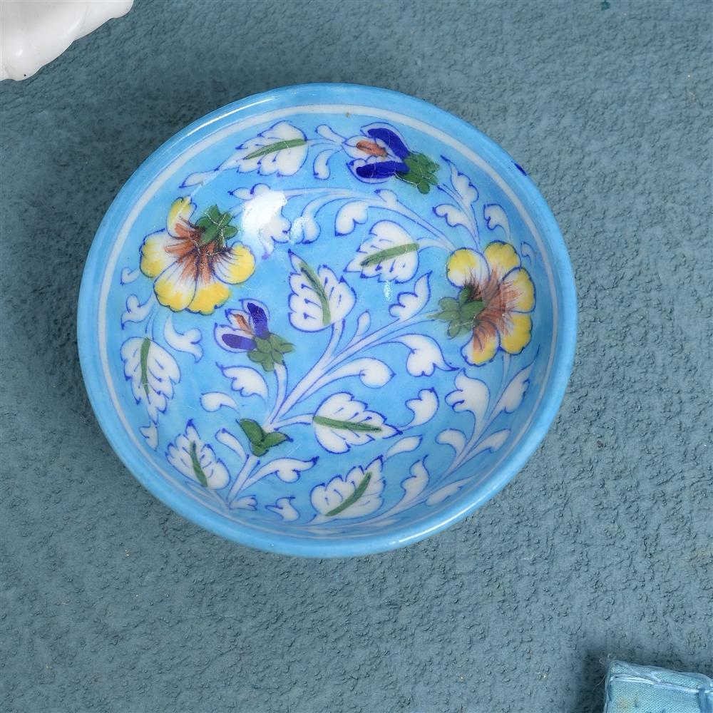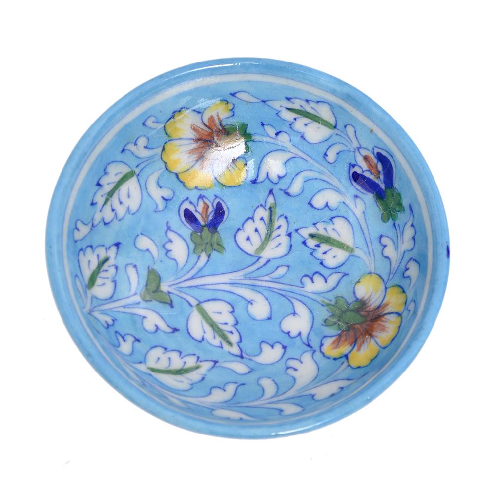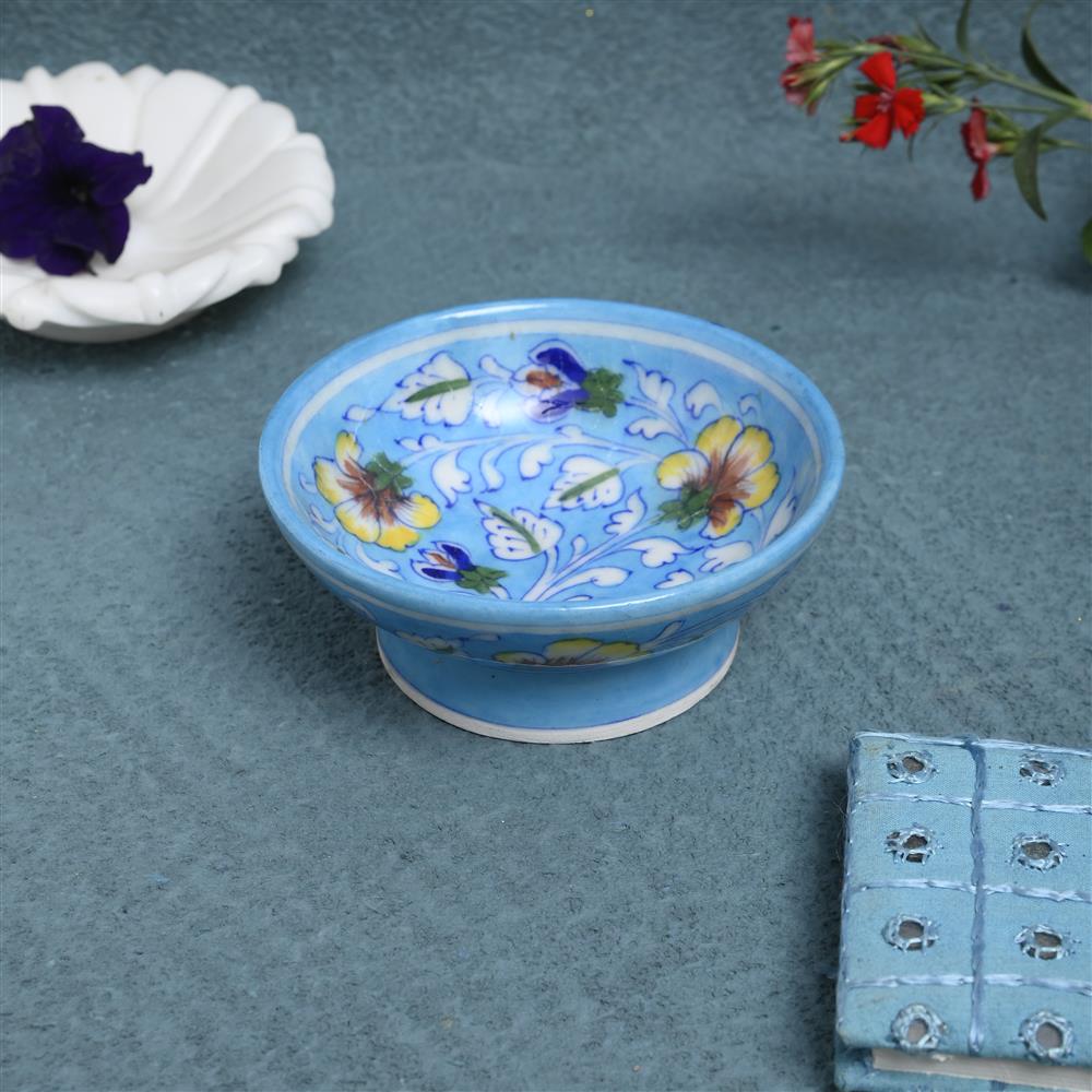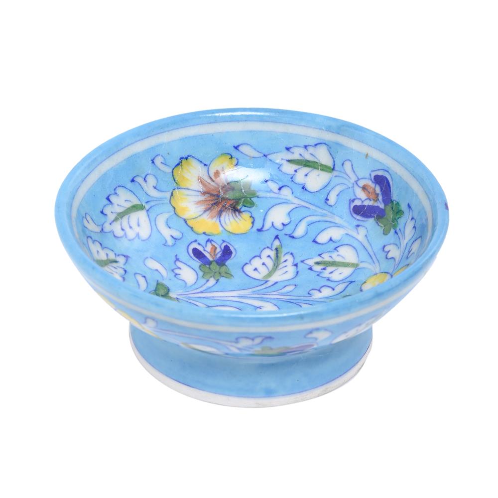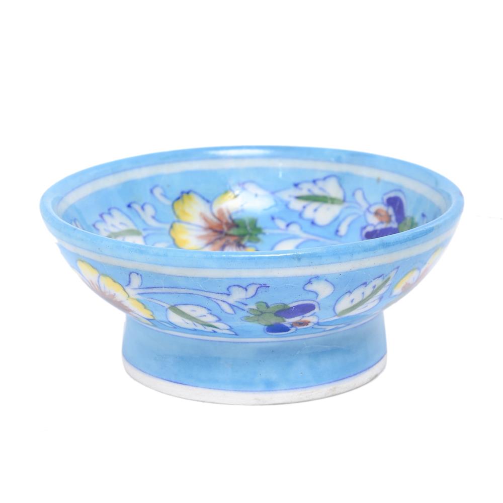 Turquoise Blue Pottery Bowl is Elegant . Indian Art Blue Pottery is widely recognized as a traditional craft of Jaipur, though it is Turko-Persian in origin. The name ‘blue pottery’ comes from the eye-catching cobalt blue dye used to color the pottery. Serving dishes as fresh as the food being served. These monochrome flower shaped Bowls, have a unique texture forming motifs of flower petals. The floral bowls are apt to be used as a pasta bowl, rice bowl, curry dish or even as a fruit bowl on the centre of the table. The colourful bowls can be paired to create a bowl set for a festive decor table setting