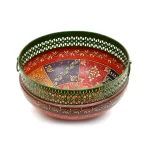 Elevate your home decor with this exquisite Handcrafted Dual-Tone Decorative Bowl, adorned with luxurious gold detailing. The unique design features a striking contrast between the rich green upper half and the warm red lower half, making it an eye-catching centerpiece for any room. Crafted with meticulous attention to detail, this bowl showcases an intricate pattern along the rim and body that reflects light beautifully, adding a touch of elegance to your space.