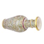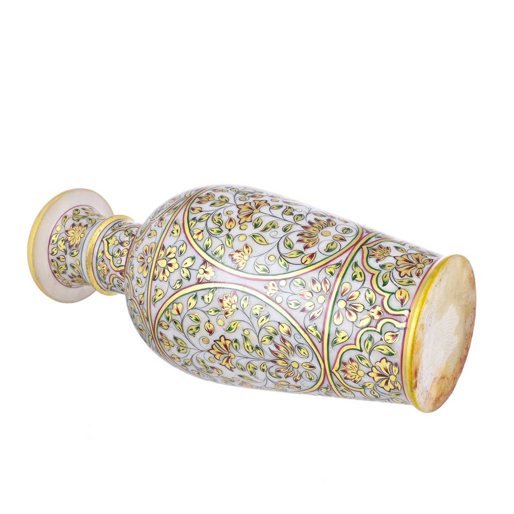 ARTS & CRAFTS WHITE MAKRANA MARBLE LOTA SHAPE VASE MUGHAL DESIGN REAL GOLD HAND PAINTED (MULTICOLOUR)