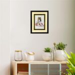 Real Gold Painted Marble Jewellery Maang tika and Kada Tanjore Painting Frame, Brown and White, Medium