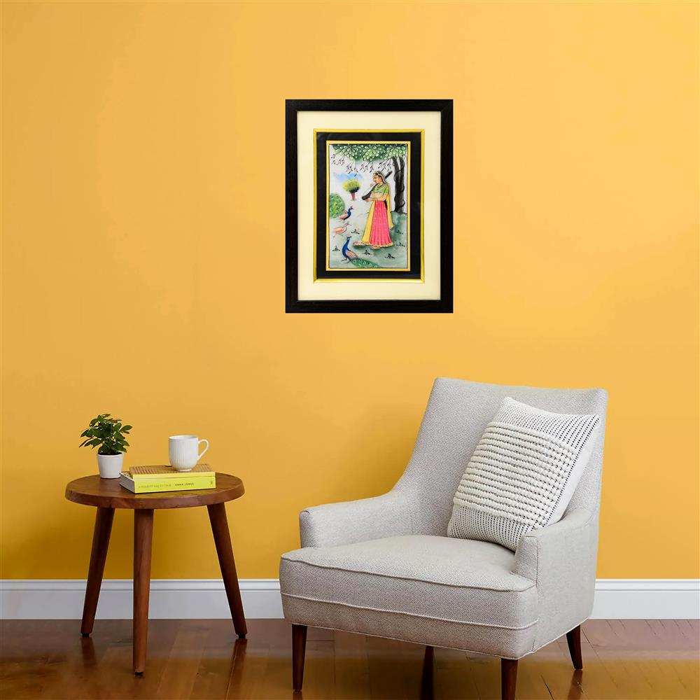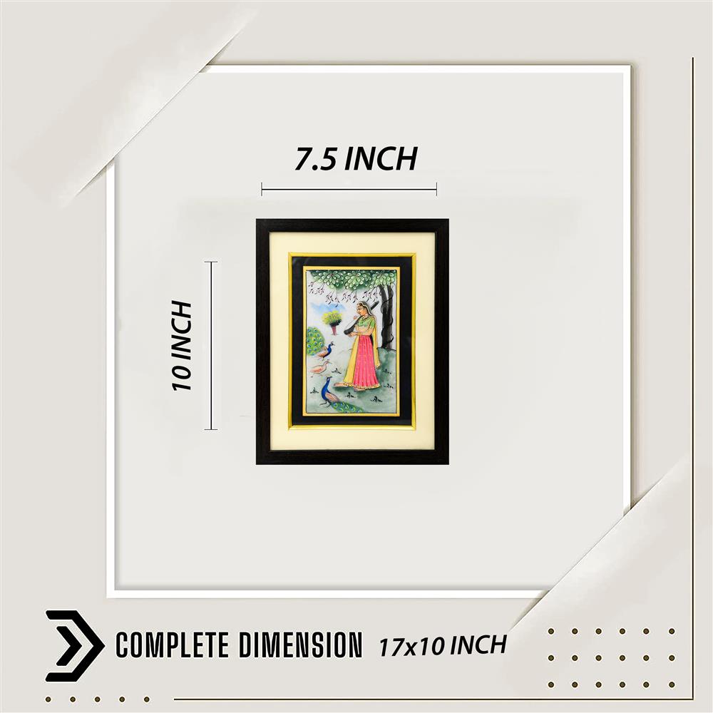 This Painting is on White Marble 24CRTS Gold Handmade Painting Frame.—-That Painting will give a royal look to your wall decoration. —This antique handmade painting which is showing a Ragini design made with watercolor on a marble plate.——This marvelous handcrafted piece of art enhances the beauty of your interiors.—This Unique Frames can enhance the surroundings of your drawing room or living room.—-Product Highlights: —-A perfect gift for any occasion.—-Best for gifting, office, home décor.—-Hand-painted gold embossed Painting Frames.—–Disclaimer: Being a handicraft product, the actual dimensions may vary up to 5% from the description.