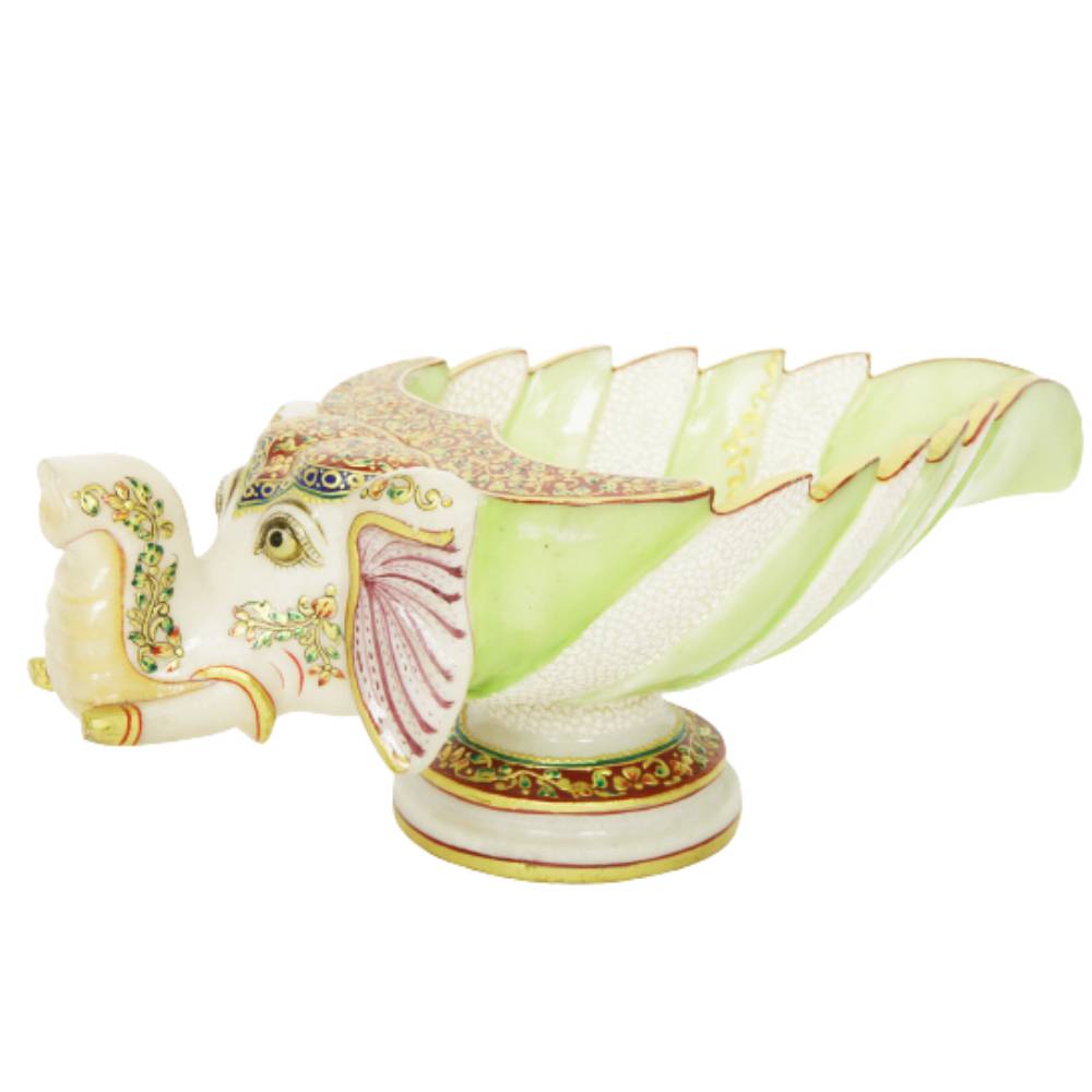 Marble Elephant Bowl Gold Hand Painted White Marble stone with beautifulhand emboss painting work using Gold Pain. This Elephant bowl is a perfect example of Indian art. Carved and painted by the accomplished artisan. High Gloss Laminated Finish.