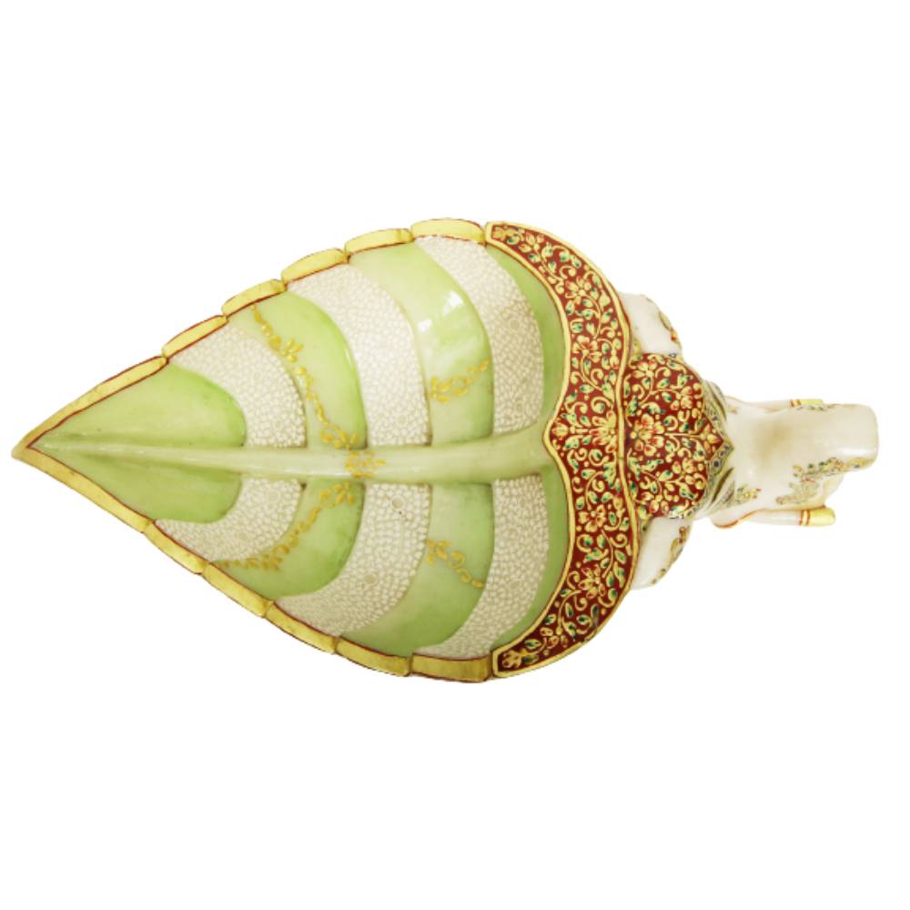 ARTS & CRAFTS KUNDAN & GOLD PAINTED MARBLE LEAF SHAPED PLATTER