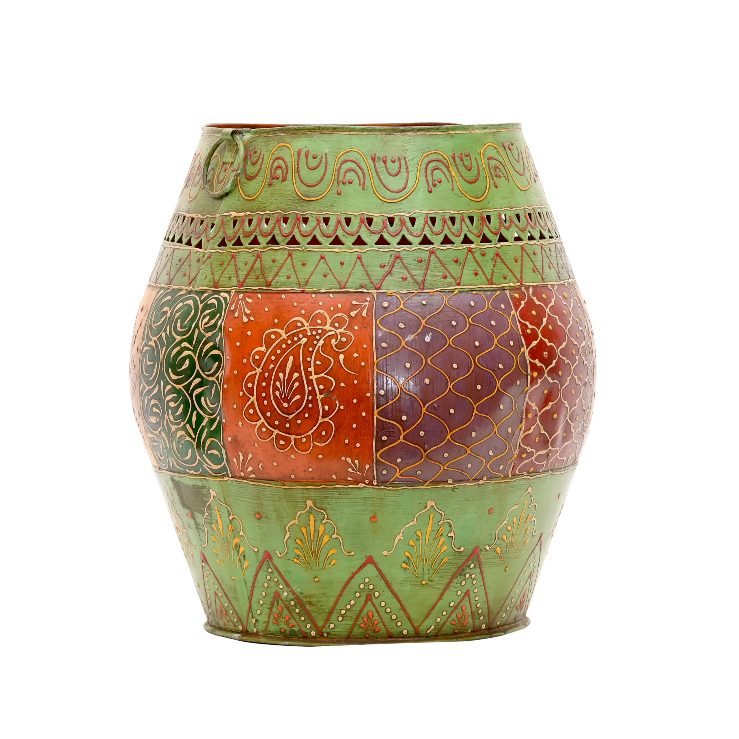 Introduce a touch of cultural elegance to your garden or home with our Dholak Shape Metal Vase. Drawing inspiration from the traditional Indian dholak drum, this unique vase marries artisanal craftsmanship with a distinctive design, celebrating classic musical heritage while serving as a functional planter.