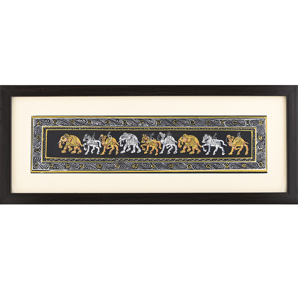 Be the first to review “Elephant & Horses Marching to left 6″x12″” Cancel reply