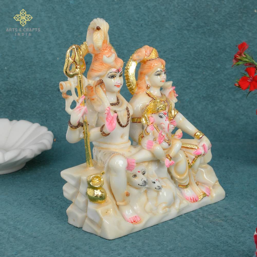 Gauri Shankar idol love of purity is made of Marble Dust Gold Hand Painted will be a great addition to your pooja area, living room space.Meenakari handwork perfect showpiece of indian craftsman. pair of love Gauri Shankar destroy obstacles. Father & Mother Of Ganesha Shiv Parvati is also worshipped as the god of education, knowledge, wisdom and wealth.