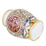 ARTS & CRAFTS WHITE MAKRANA MARBLE HANDI SHAPE MUGHAL FLORAL DESIGN VASE 7″ 22CRT REAL GOLD HANDPAINTED