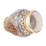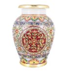 ARTS & CRAFTS MAKRANA MARBLE LEAF DESIGN LOTA SHAPE VASE 6″ REAL GOLD HANDPAINTED (MULTICOLOUR FLORAL IN CIRCLE)