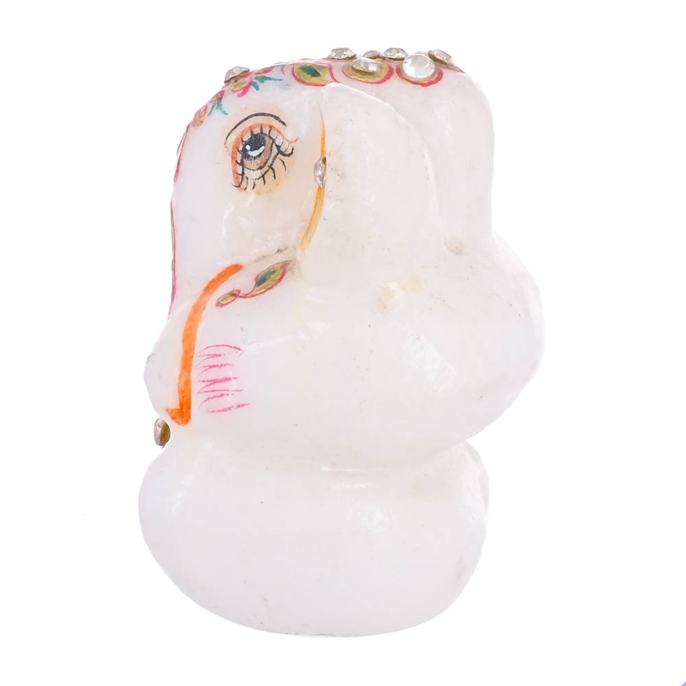 NAME – WHITE MAKRANA MARBLE AASHIRWAD GANESH 5″ REAL GOLD HAND PAINTED WITH REAL KUNDAN WORK