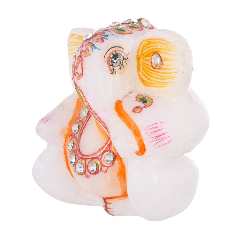 Marble Kundan Ashirwad Ganesha Idol in Orange and White 3"