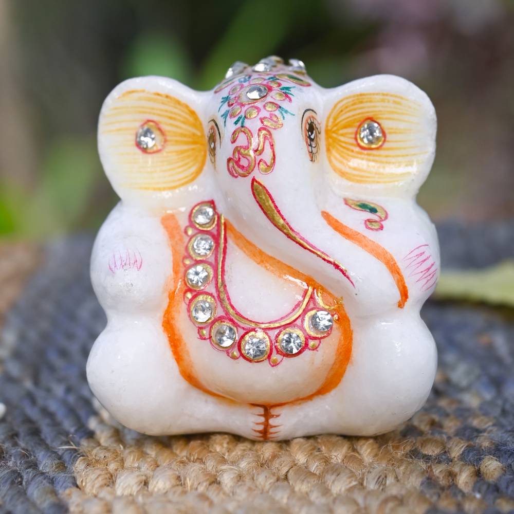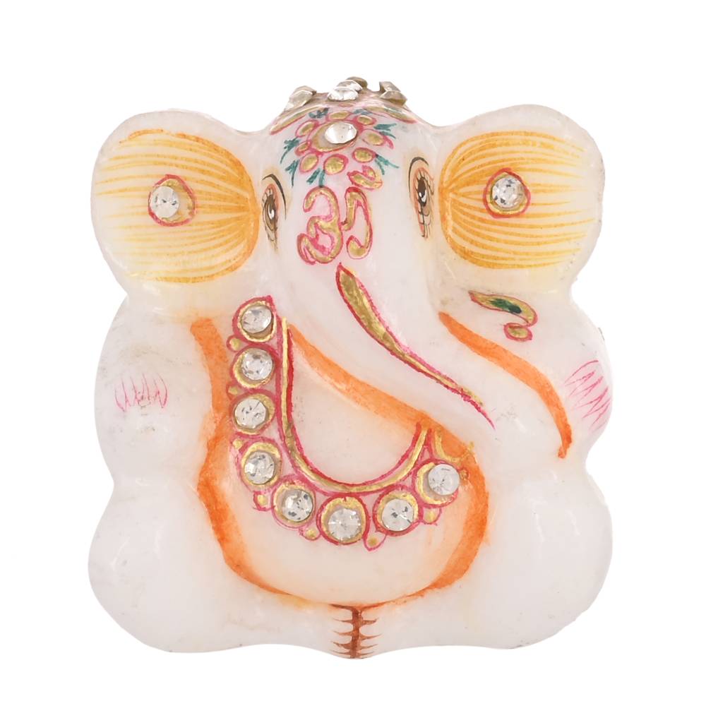 Marble Kundan Ashirwad Ganesha Idol in Orange and White 3″