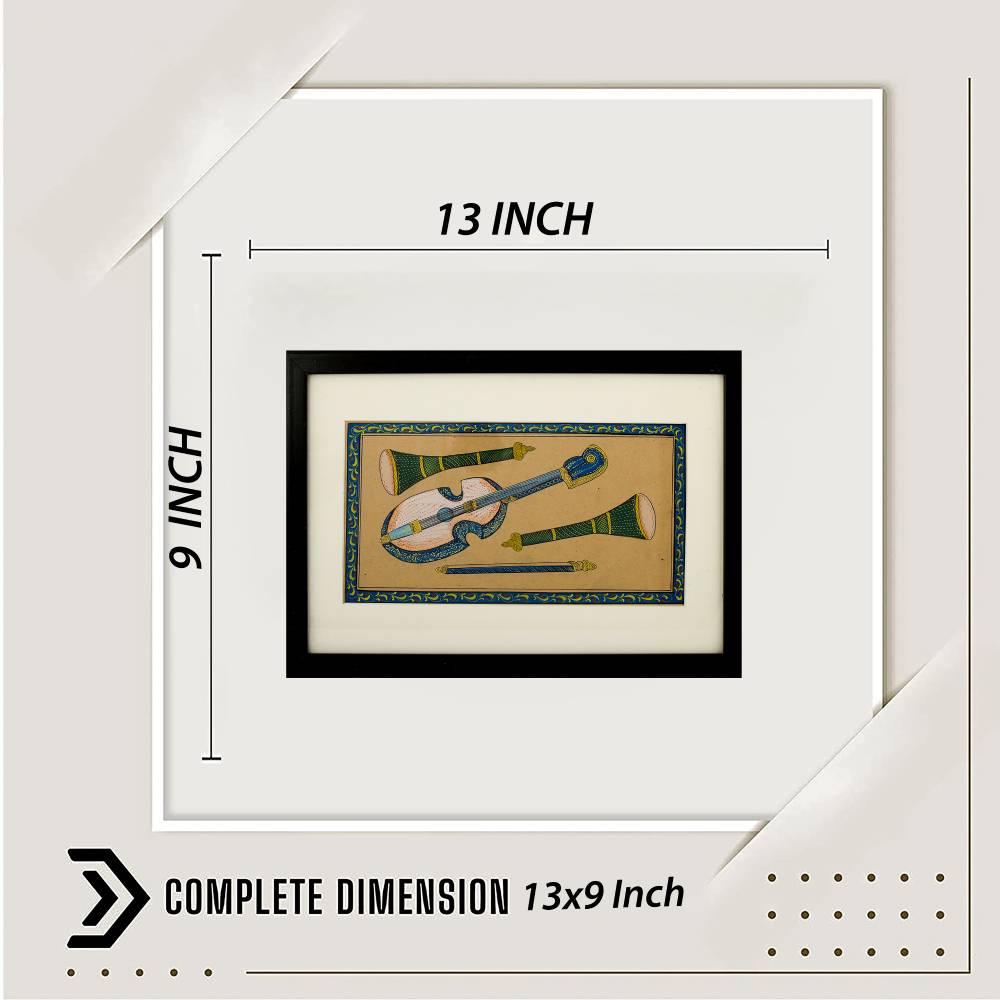 This Art is a Handmade Painting in a Frame.— That painting will give a royal look to your wall decoration. This antique handmade miniature Paper painting shows a Musical instrument Veena & Shehnai design made with watercolour on paper. This marvellous handcrafted piece of art enhances the beauty of your interiors.—This Unique Frame can enhance the surroundings of your drawing room or living room.—-Product Highlights: —-A perfect gift for any occasion. —-Best for gifting, office, home decor.