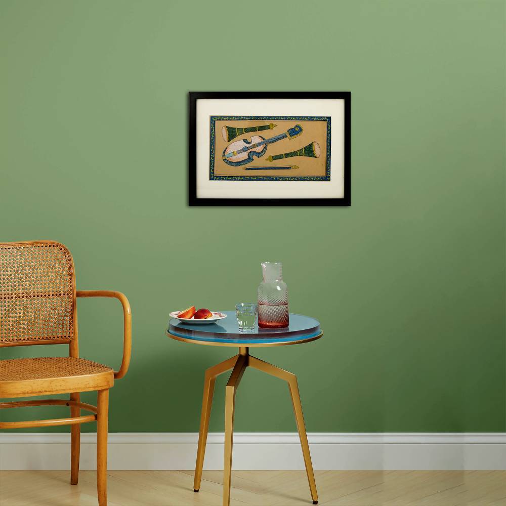Tags: Art Collectibles, Arts & Crafts, Cultural Craft, Ethnic Home Accents, Hand-Painted Paper, Handcrafted Decor, home decor, Indian Musical Instruments, Miniature Art, Miniature Painting, Musical Instrument Art, Paper Art, Shehnai, Traditional Artistry, Veena