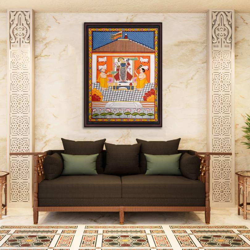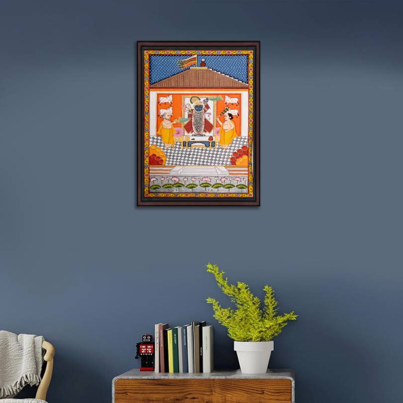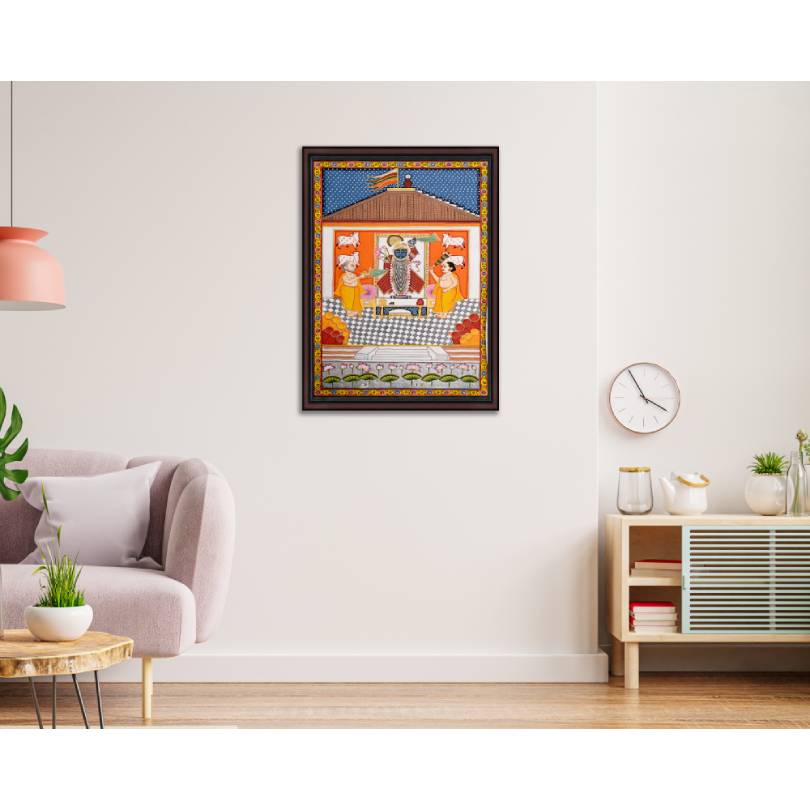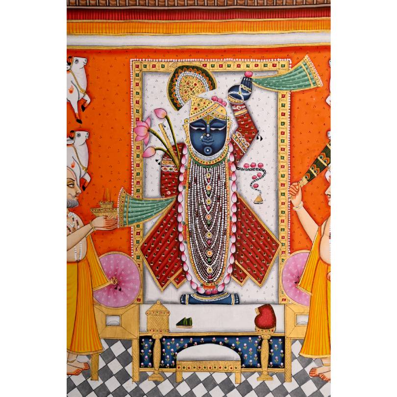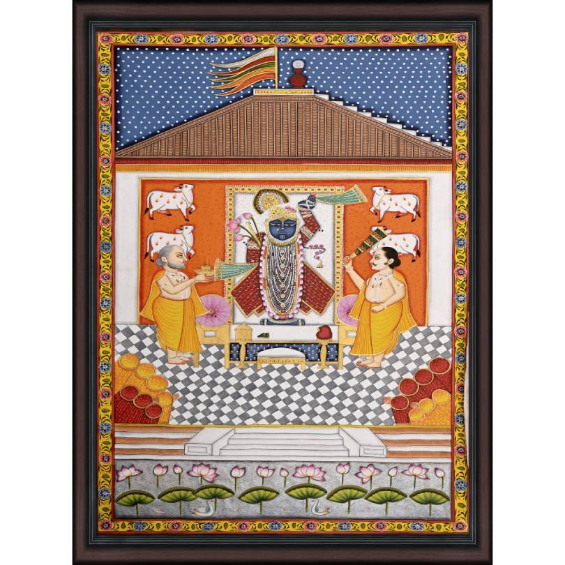 Pichwai style of painting is dedicated to revering and adoring Shrinathji. Pichwai is also the most famous artworks depicting Shrinathji. Pichwai paintings also known as “Pichvai” is a traditional Indian art having its origins in Rajasthan, India. The paintings have deep religious roots and are executed with the utmost devotion by the artists.