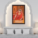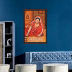 Everyone loves to decorate one’s home. Depicting the love for decorating the house, this beautiful artwork shows a native rajasthani lady making intricate Mandana art on the walls and floor of her home.