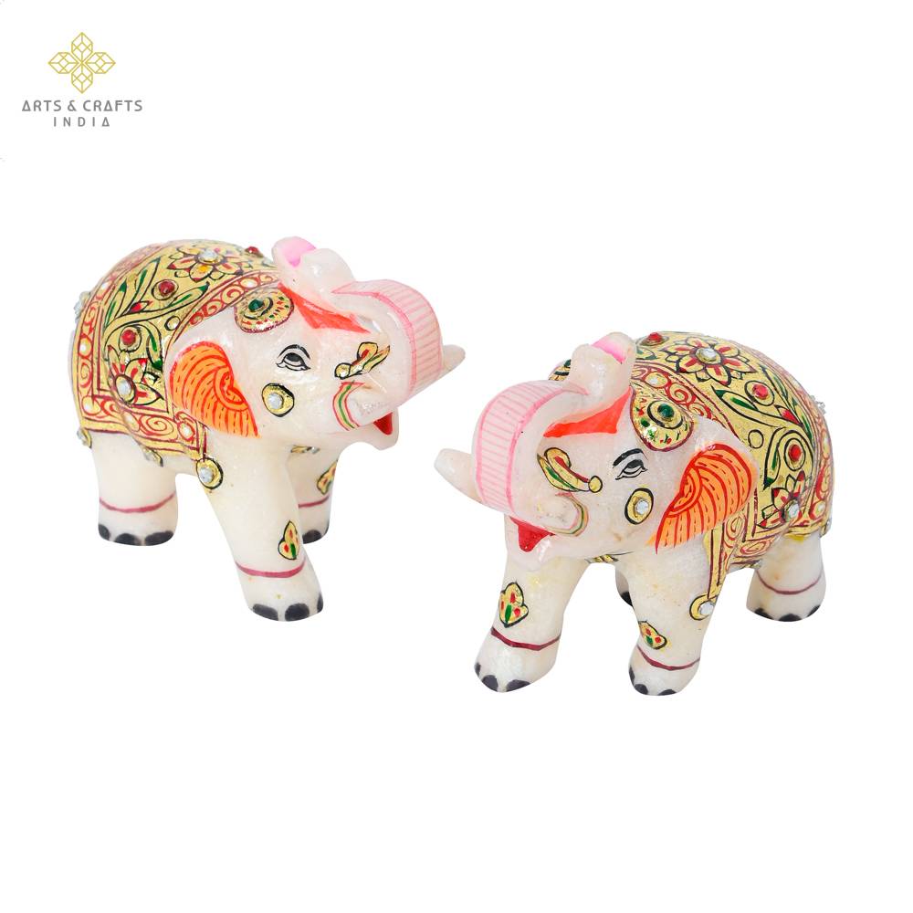 Royal Pair of Elephant made of White Makrana Marble Gold Hand Painted will be a great addition to your pooja area, living room space. Meenakari handwork perfect showpiece of Indian craftsman. Lord Ganesha Idol gives positive vibration to your area and Natural Healing, made of Rose Quartz will be a great addition to your pooja area, living room space. Meenakari handwork perfect showpiece of Indian craftsman. Lord Ganesha uses his trunk to destroy obstacles. Ganesha is also worshipped as the god of education, knowledge, wisdom and wealth. A perfect gift for any occasion. Best for gifting, office, home décor. Hand-painted gold embossed Painting Frames.
